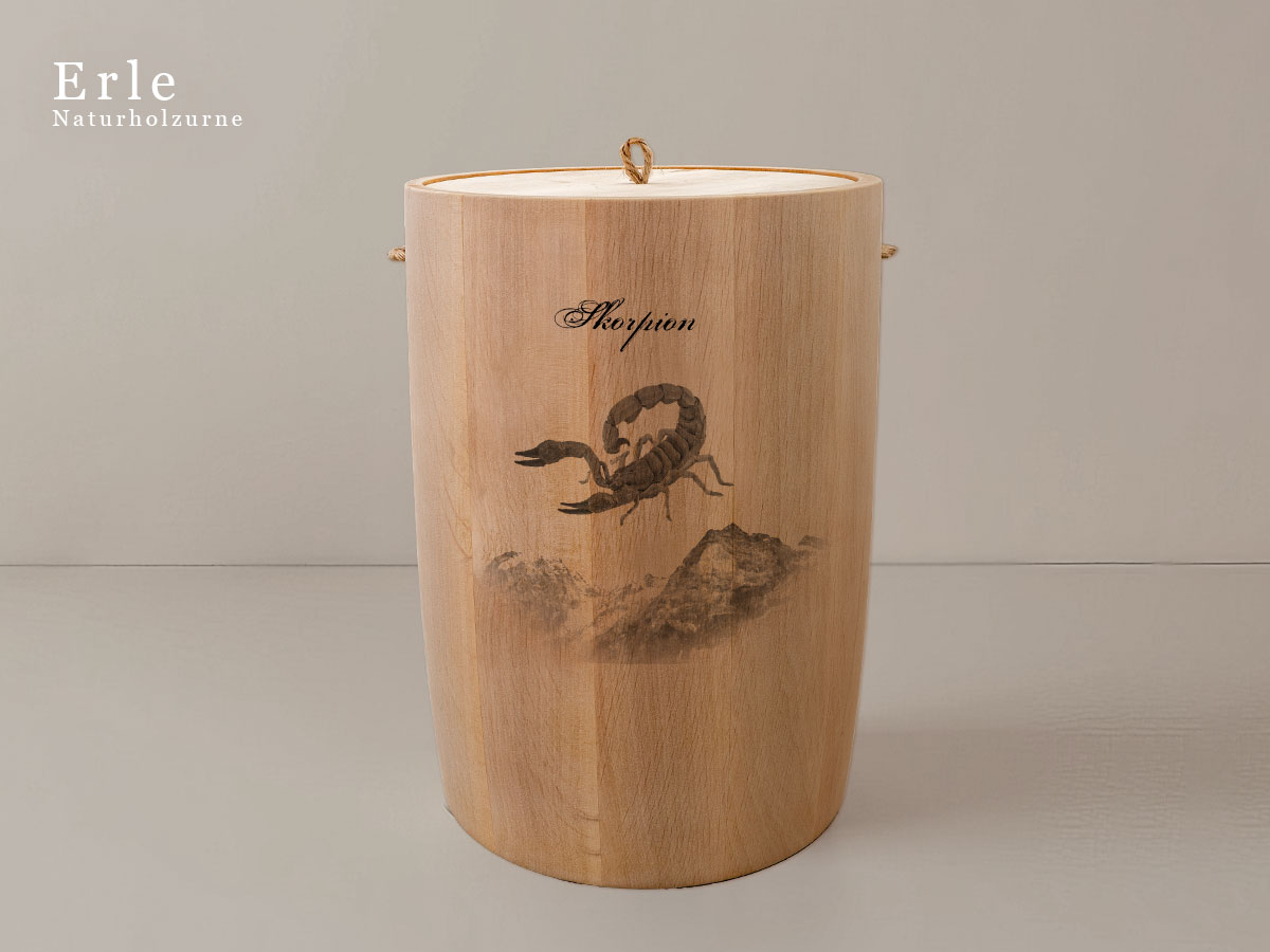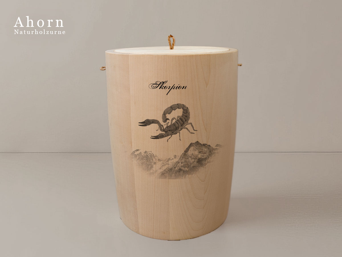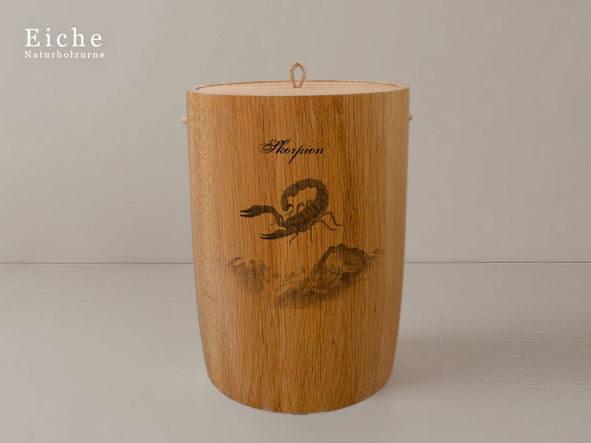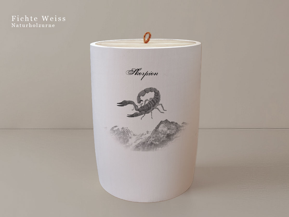 Das Motiv zeigt das Sternzeichen Skorpion und symbolisiert Charakter, Persönlichkeit und die Verbindung zu den Sternen. Es steht für Einzigartigkeit und Orientierung – Werte, die in Erinnerung bleiben sollen.