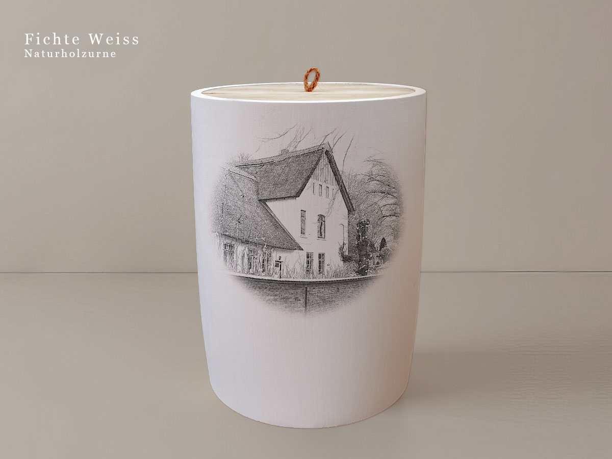 Das Motiv zeigt das Allmershaus in Rechtenfleth und verkörpert die tiefe Verbundenheit zur Heimat. Es steht für Herkunft, Identität und Erinnerungen – Werte, die in Erinnerung bleiben sollen.