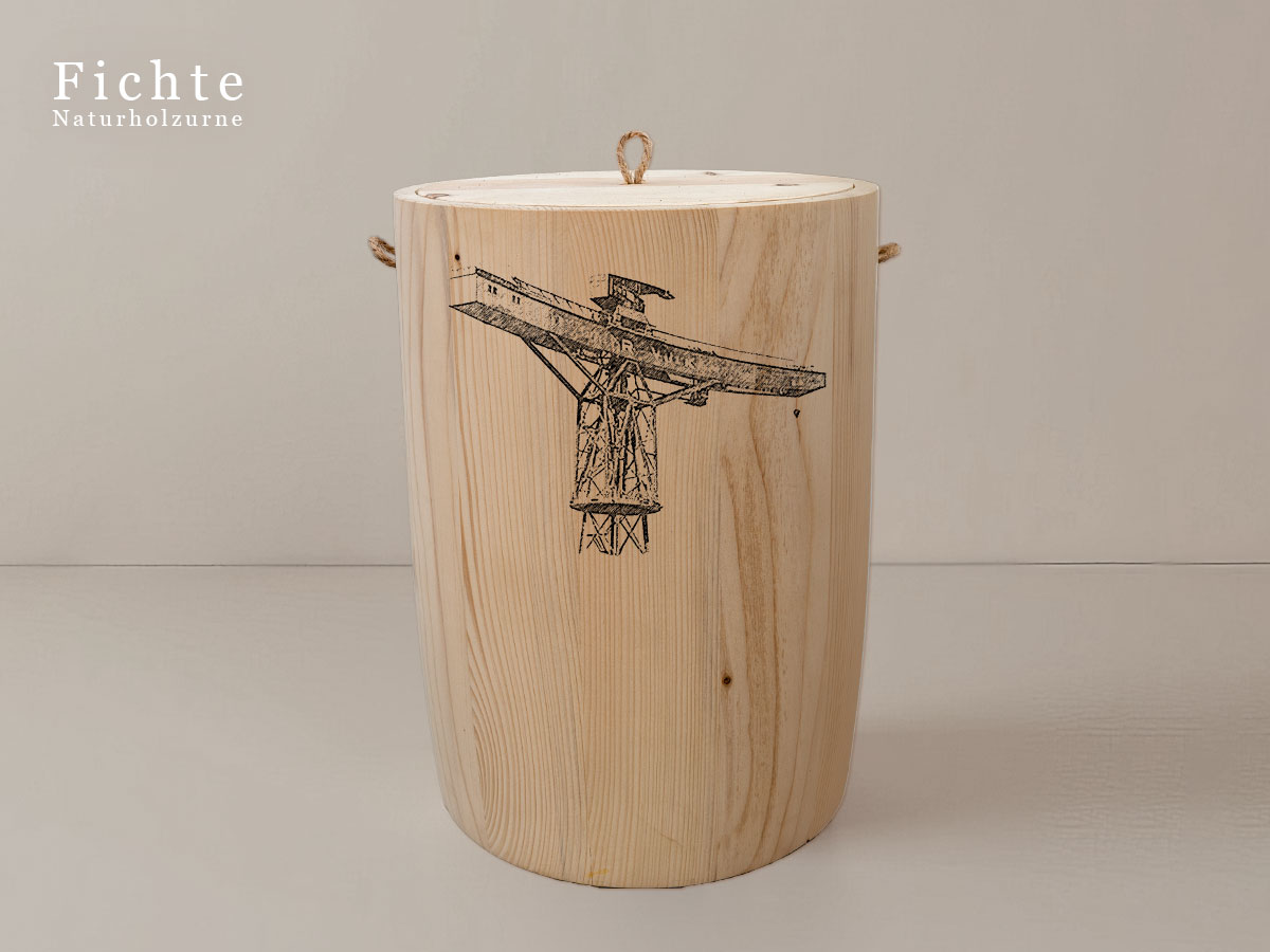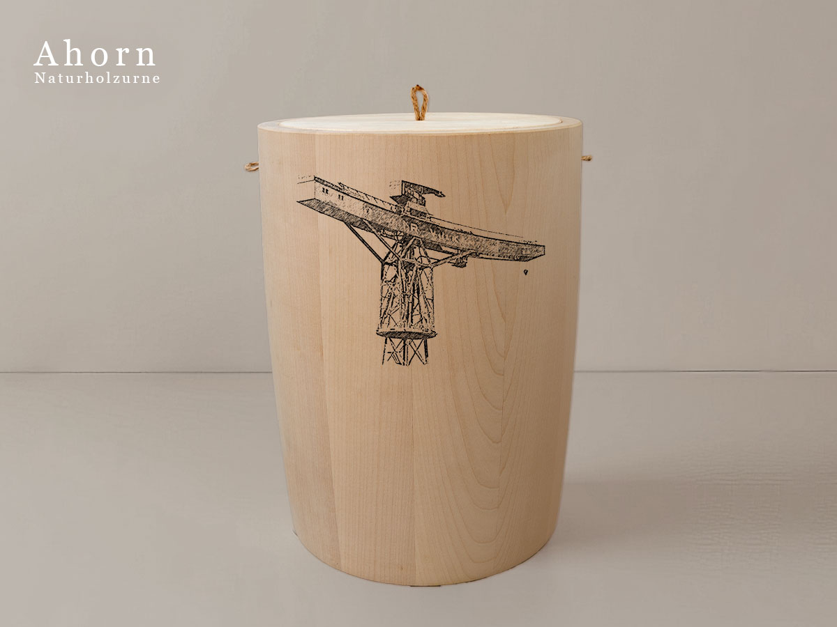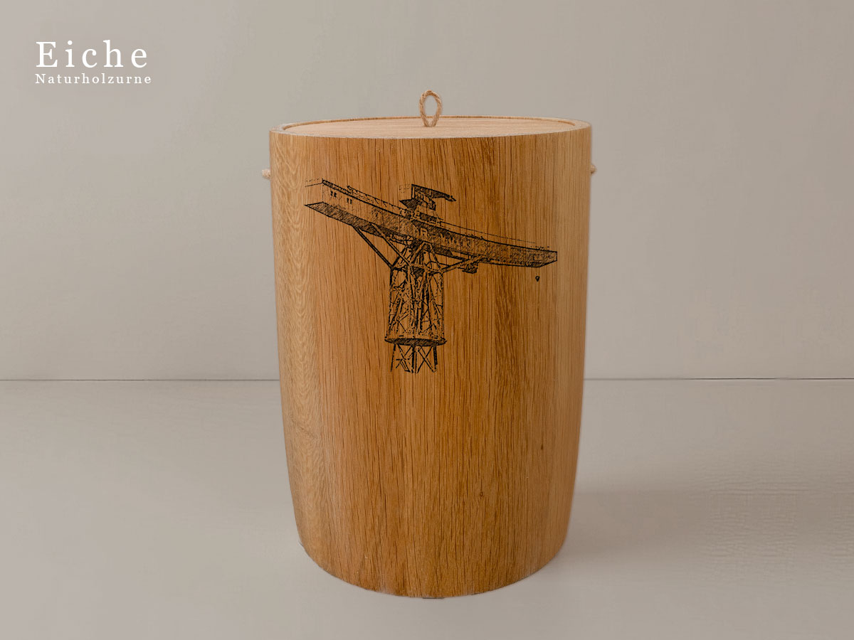 Das Motiv wird präzise in die Oberfläche der Urne gelasert, ohne Verwendung von Farben. So bleibt das natürliche Erscheinungsbild des Holzes erhalten und betont die schlichte Eleganz des Designs.