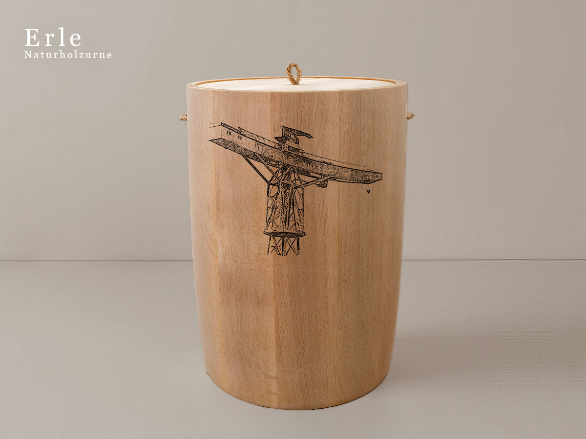 Das Motiv zeigt den Vulkankran in Vegesack und verkörpert die tiefe Verbundenheit zur Heimat. Es steht für Herkunft, Identität und Erinnerungen – Werte, die in Erinnerung bleiben sollen.