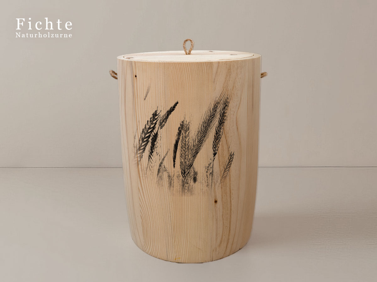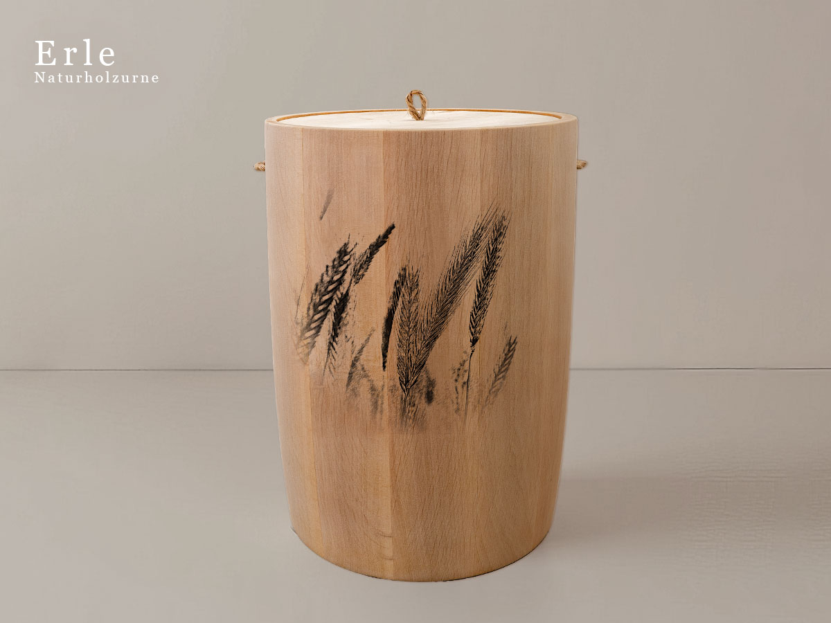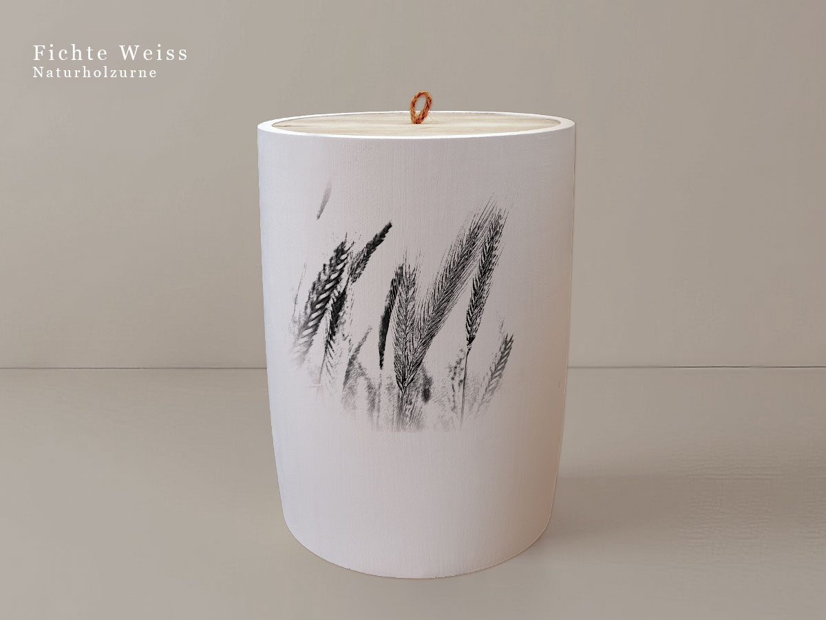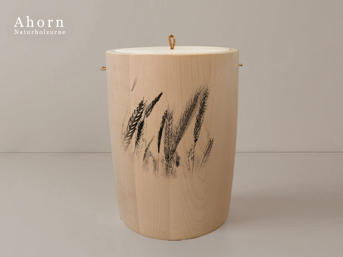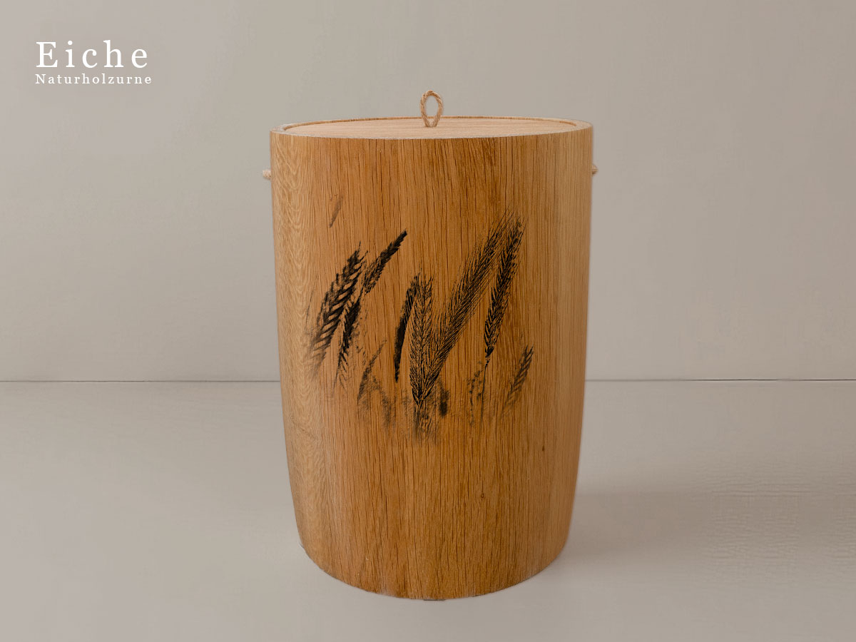 Das Motiv zeigt Getreideähren und symbolisiert die Kraft und Schönheit der Natur. Es steht für Wachstum, Beständigkeit und die tiefe Verbindung zur natürlichen Welt – Werte, die in Erinnerung bleiben sollen.