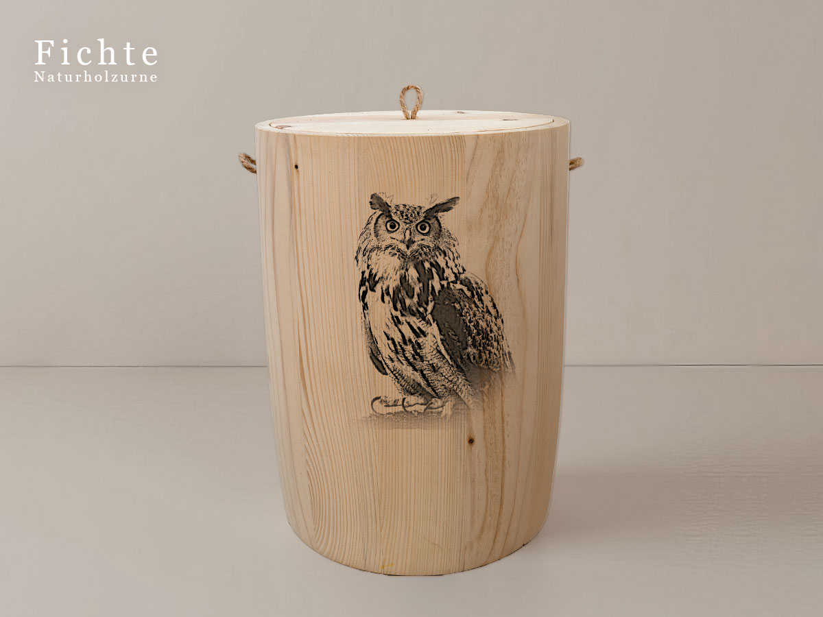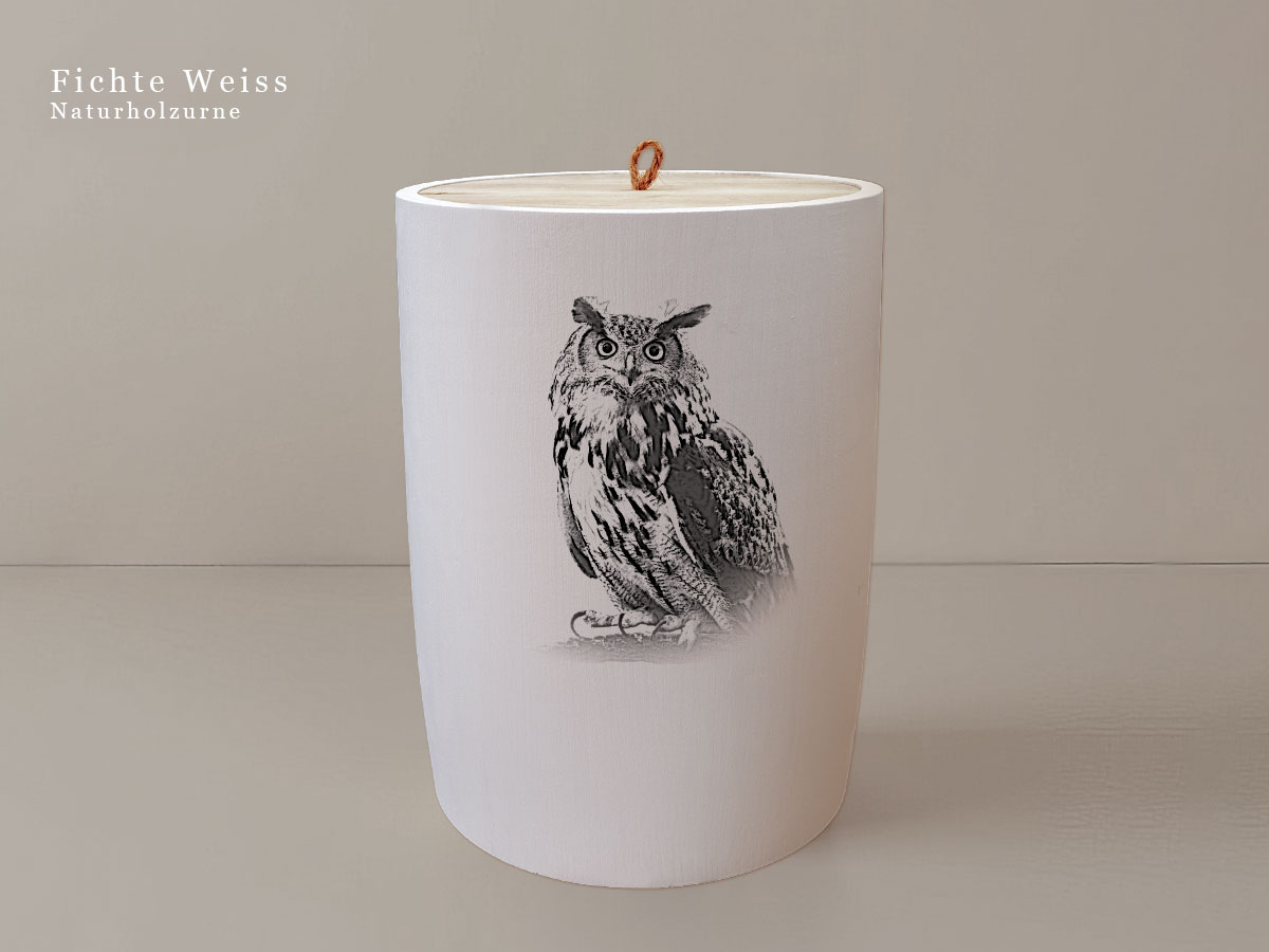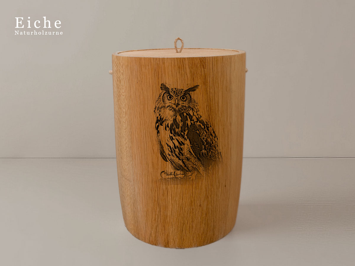 Das Motiv zeigt eine Eule und symbolisiert die Kraft und Schönheit der Natur. Es steht für Wachstum, Beständigkeit und die tiefe Verbindung zur natürlichen Welt – Werte, die in Erinnerung bleiben sollen.