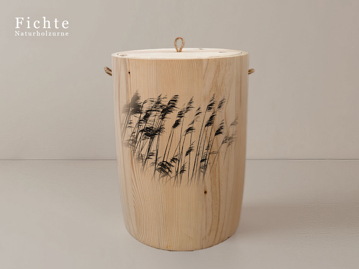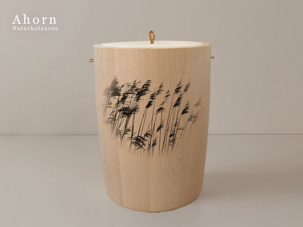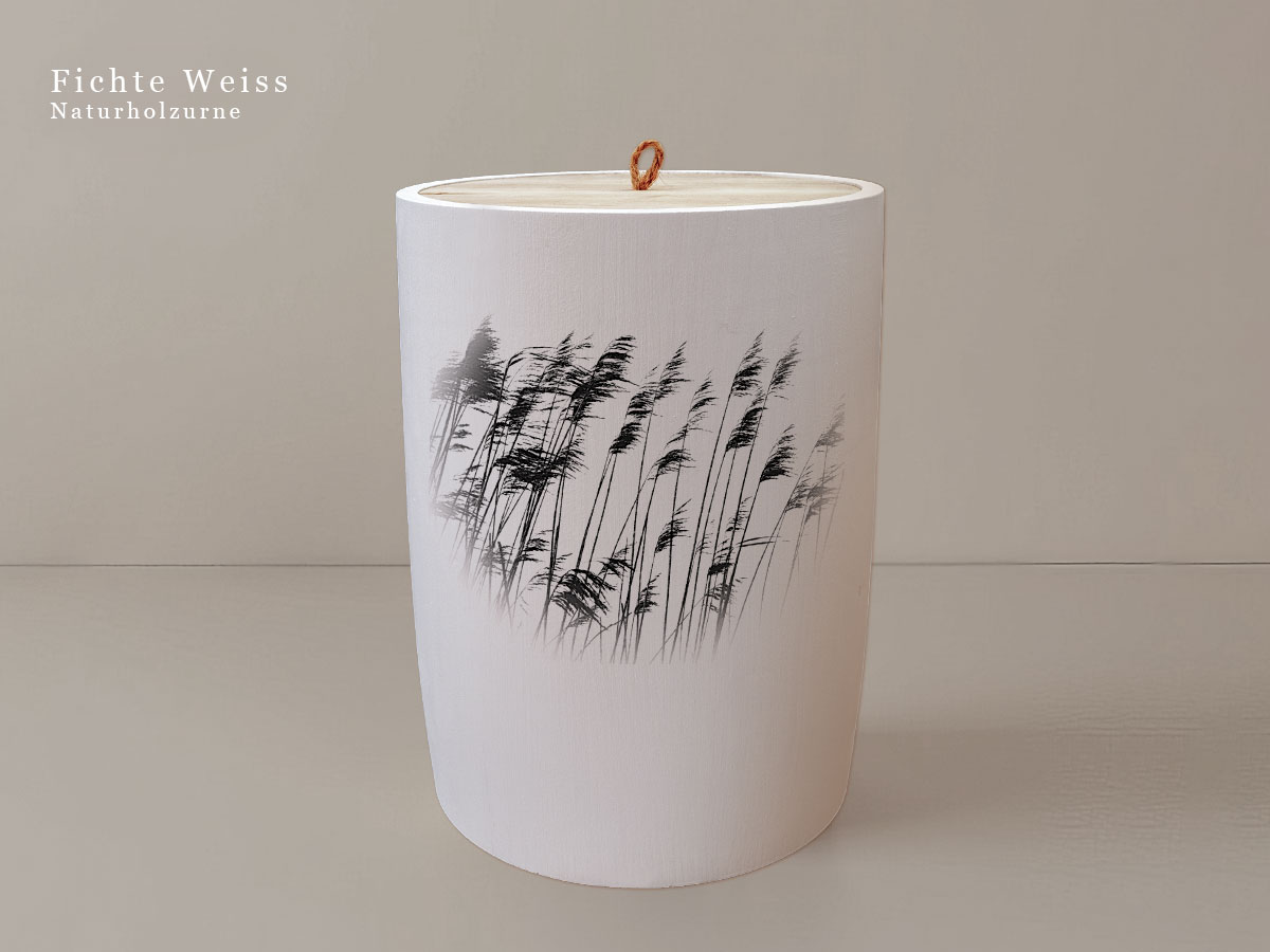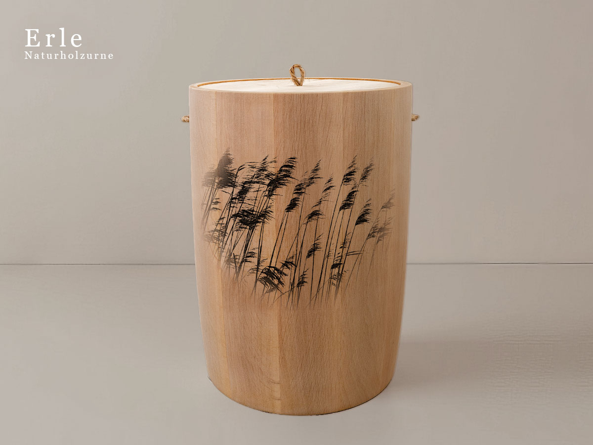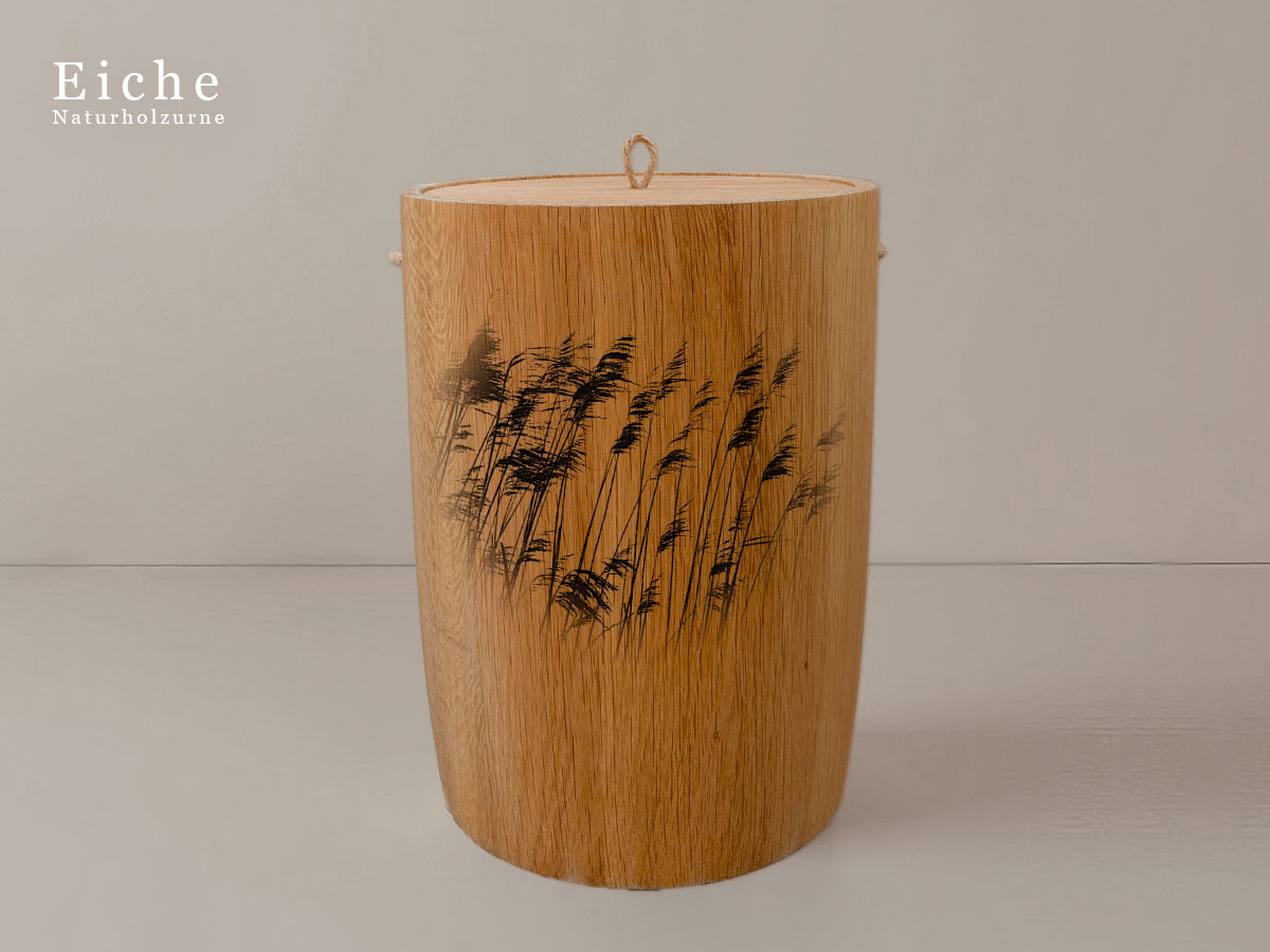 Das Motiv zeigt Schilf und symbolisiert die Kraft und Schönheit der Natur. Es steht für Wachstum, Beständigkeit und die tiefe Verbindung zur natürlichen Welt – Werte, die in Erinnerung bleiben sollen.