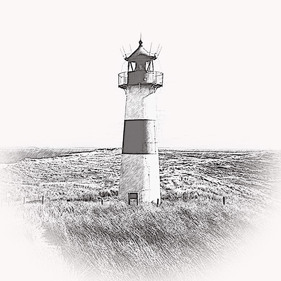 Das Motiv zeigt den Leuchtturm List Ost auf Sylt. Der Leuchtturm steht als Symbol für Führung, Beständigkeit und Zuverlässigkeit – Werte, die in Erinnerung bleiben sollen.