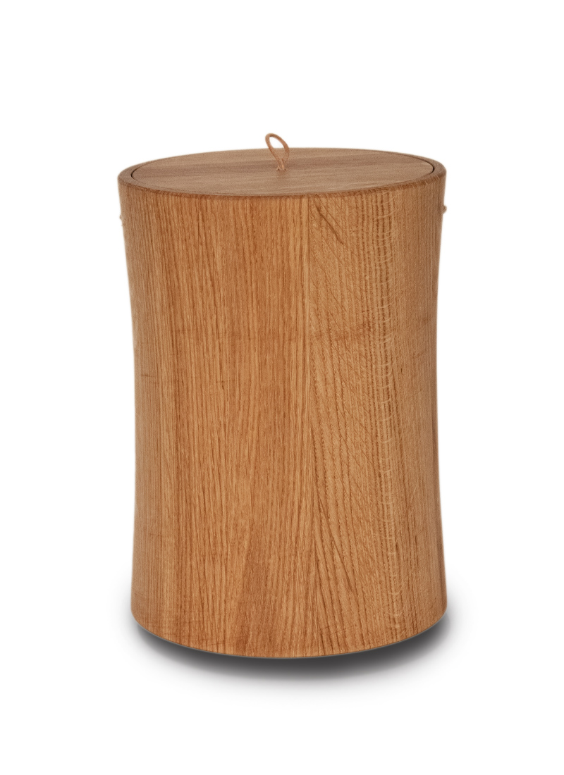 Die Form der Urne unterstreicht die Maserung des Holzes.