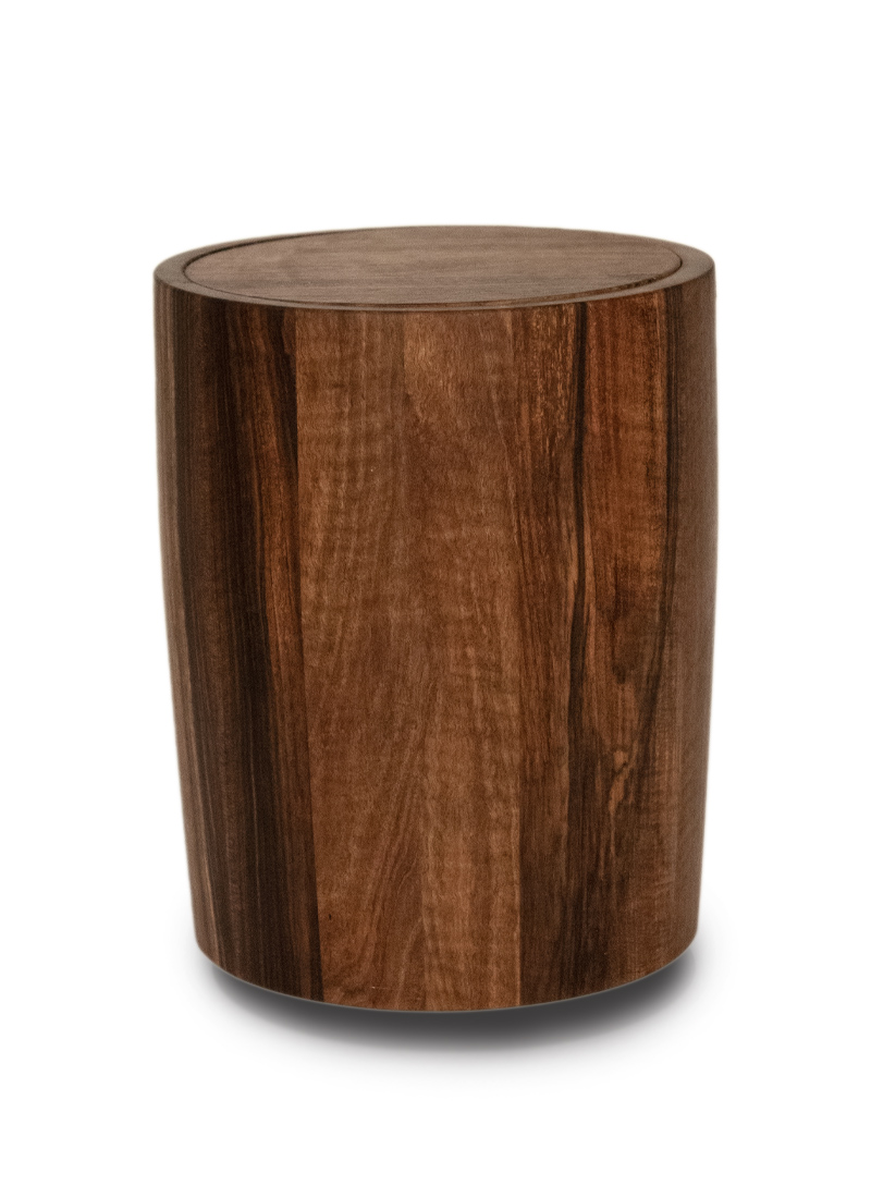 Die Form der Urne unterstreicht die Maserung des Holzes.