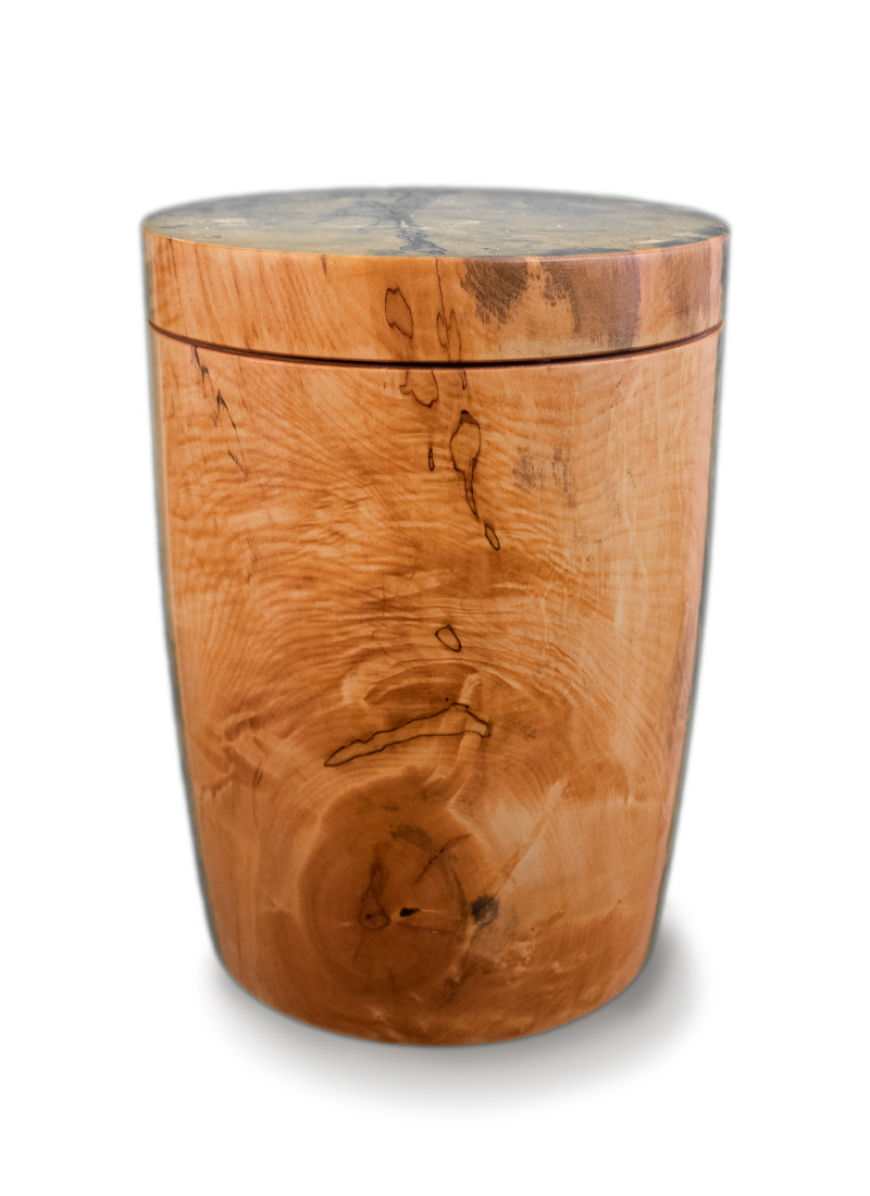 Unsere Premium Urnen sind edle Einzelstücke. Durch eine Oberfläche aus Schellack erhalten sie einen unvergleichlichen Glanz. Schellack ist ein Naturprodukt und wird heute nur noch im Musikinstrumentenbau oder der Restauration eingesetzt. Er ist der klassische Klavierlack und wird von Hand mit einem Ballen aus Leinen, mindestens 10 mal aufgetragen. Schellackpolitur ist hauch dünn und hat dadurch eine warme und angenehme Haptik. Diese Urne wurde aus einem Holzstück gefertigt. Erst grob vorgearbeitet dann getrocknet danach hat sie die endgültige Form erhalten. Nach mehrfachen Schleifgängen werden die Poren gefüllt und der Lack aufgetragen. Das Beizen mit natürlichen Farbpigmenten und der Hochglanz heben die natürliche Holzmaserung besonders hervor.