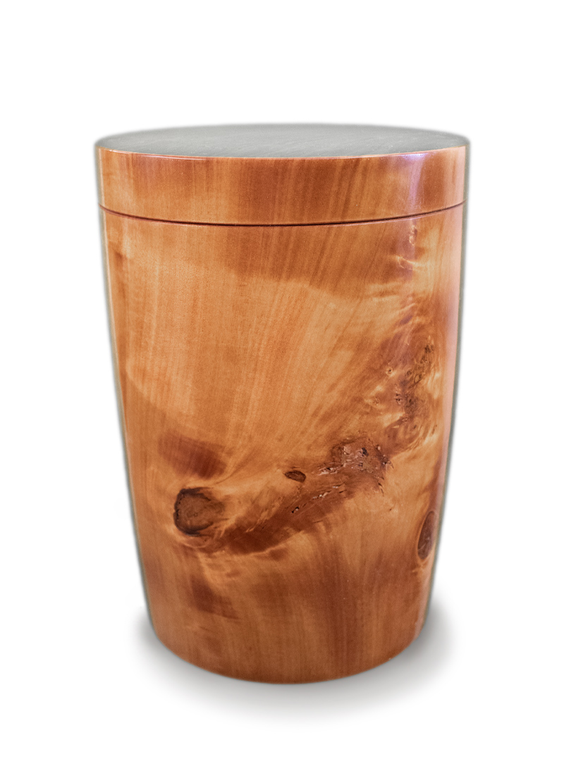 Unsere Premium Urnen sind edle Einzelstücke. Durch eine Oberfläche aus Schellack erhalten sie einen unvergleichlichen Glanz. Schellack ist ein Naturprodukt und wird heute nur noch im Musikinstrumentenbau oder der Restauration eingesetzt. Er ist der klassische Klavierlack und wird von Hand mit einem Ballen aus Leinen, mindestens 10 mal aufgetragen. Schellackpolitur ist hauch dünn und hat dadurch eine warme und angenehme Haptik. Diese Urne wurde aus einem Holzstück gefertigt. Erst grob vorgearbeitet dann getrocknet danach hat sie die endgültige Form erhalten. Nach mehrfachen Schleifgängen werden die Poren gefüllt und der Lack aufgetragen. Das Beizen mit natürlichen Farbpigmenten und der Hochglanz heben die natürliche Holzmaserung besonders hervor.